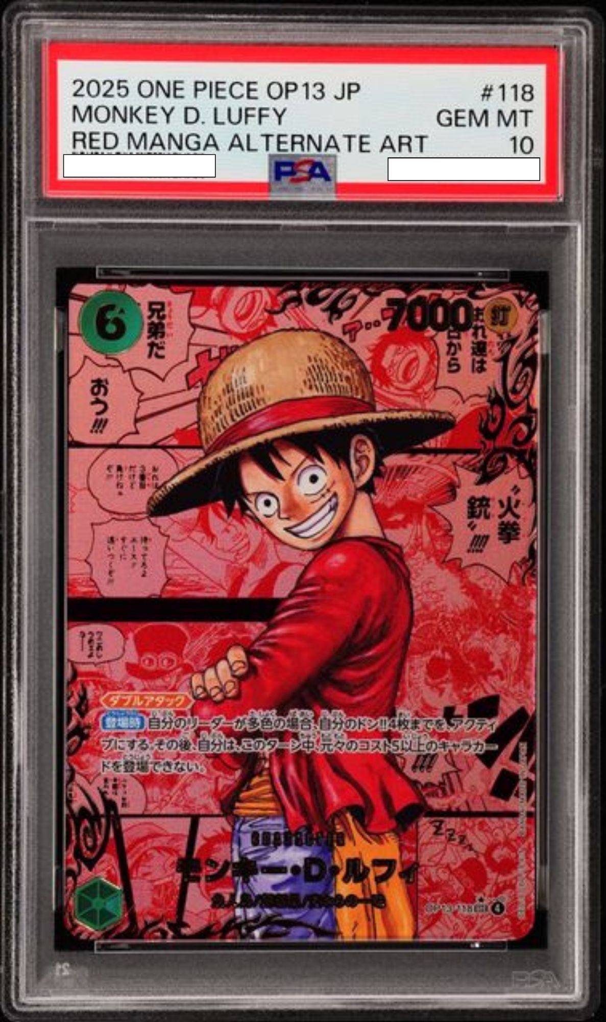 モンキー・D・ルフィ 【シークレット】【レッドスーパーパラレル】【赤】【OP13-118】【PSA10】